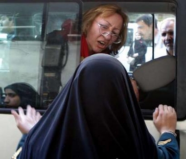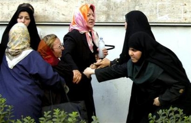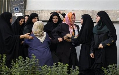 AP - Sun Jun 12, 1:27 PM ET Two Iranian police women, right, try to detain demonstrators during a Iranian Women Movement rally in front of Tehran University Sunday June 12, 2005. (AP Photo/Arshia Kiani)