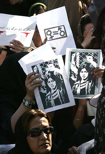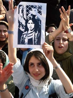 Reuters - Sun Jun 12, 4:21 PM ET An Iranian woman holds a photograph during a protest gathering in front of Tehran University in Tehran June 12, 2005. About 300 women took part in the protest against gender discrimination in the Islamic republic of Tehran. REUTERS/Raheb Homavandi